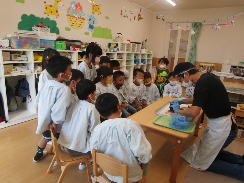 「エラのなかはどうなっているの?」「くちのなかがみたい」など、興味が広がっていました。