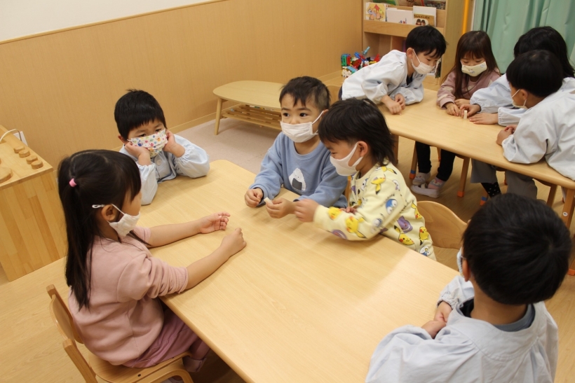 「うちでもみた!」「たべたことあるよ」など話をしながら、興味をもって話を聞いていました。