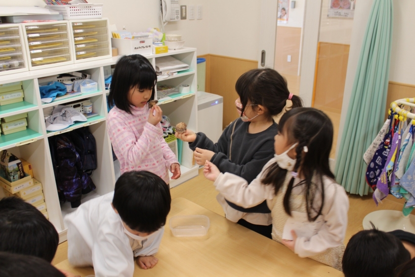 「かたい!」「しわしわ」「いいにおい」など、色々と感じていました。