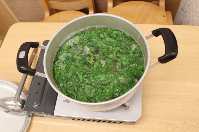 大根菜も細かく切って入れ、大根スープができました。