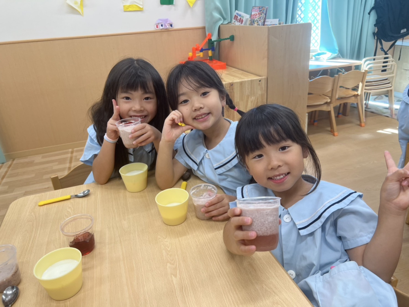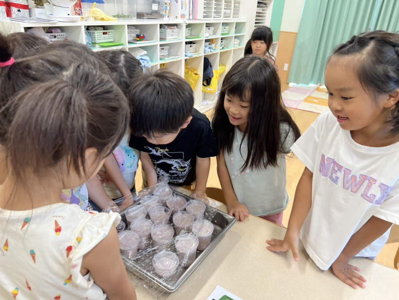 2層に分かれているゼリーを見て、大喜び!!分かれていなかったゼリーもありましたが、みんなで「何故分かれなかったのか?」を考えるとてもよい時間にもなりました。