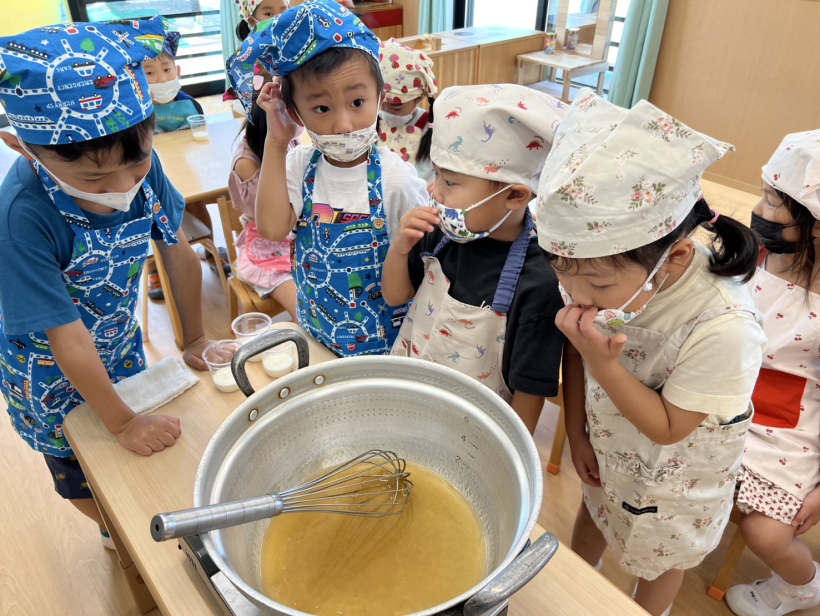 子どもたちの「自分でやりたい!」と言う気持ちを大切にしながら、一緒に行うことで不思議な気持ちや様々な気づきに寄り添うことができました。