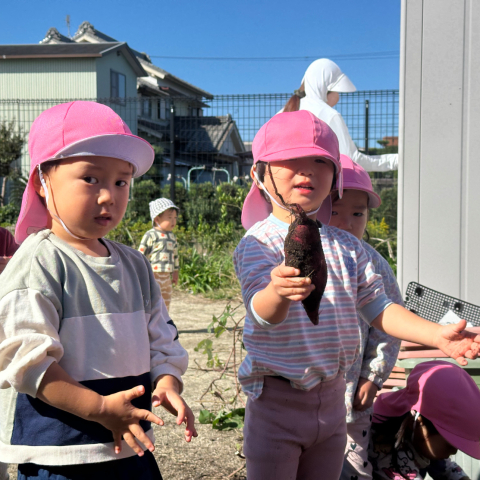 保育園の畑で芋掘りをしました。絵本を読んでから掘りにいくと、「優し...