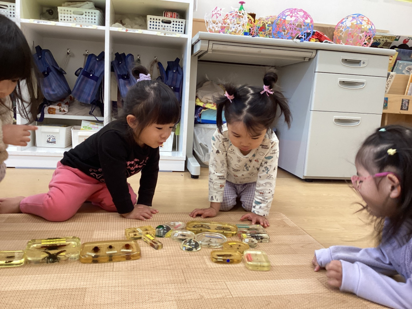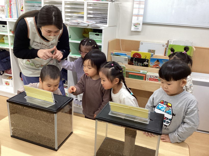 普段は虫を怖がる子もいますが、みんな興味津々な様子でした。