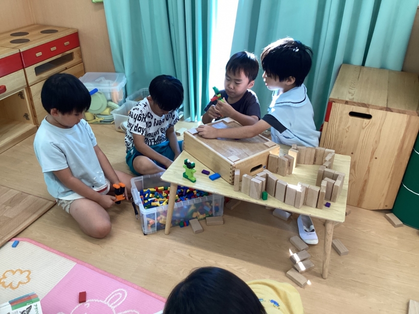 ブロックや積み木で作る遊びもダイナミックになってきました。