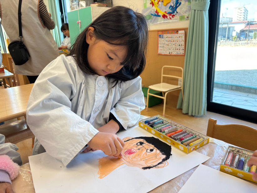 「わたしってどんなかおだっけ?」と鏡を見ながら描いている子もいました。