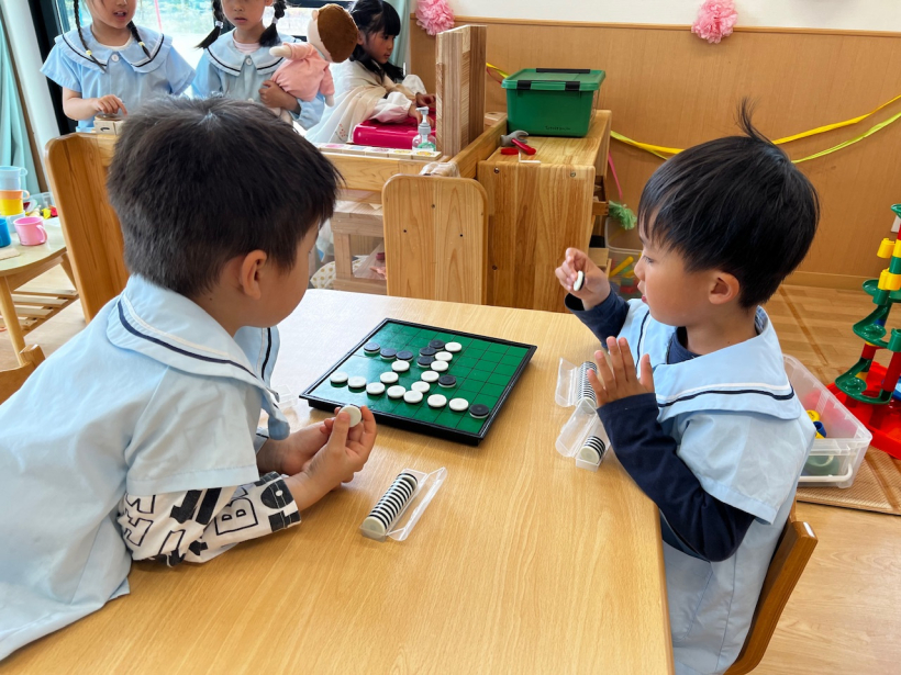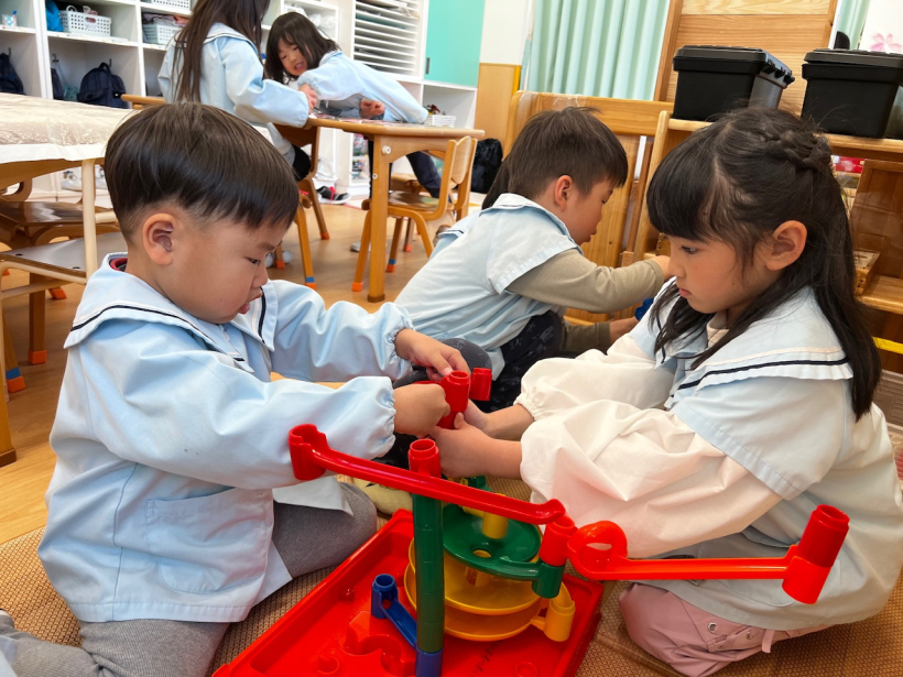 進級して新しい保育室になると、「なにしようかな〜」と友だちや保育者と好きな遊びを見つけて楽しんでいました。