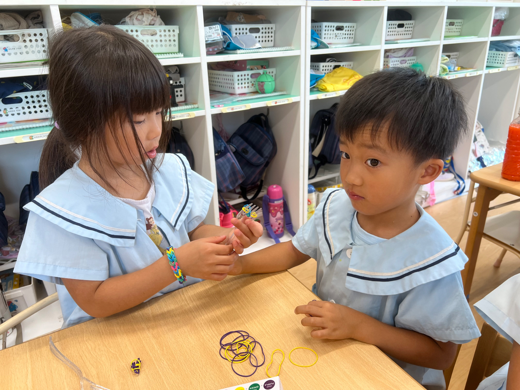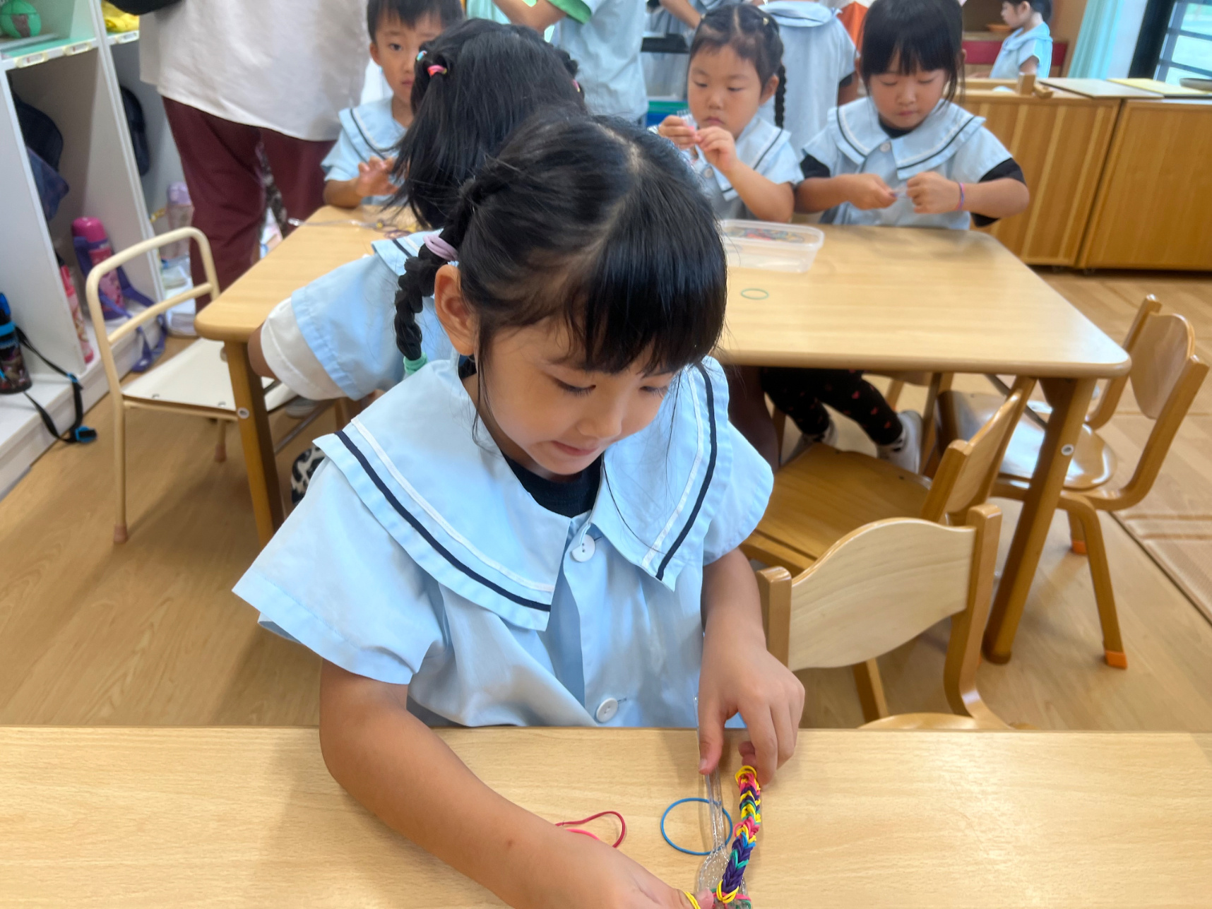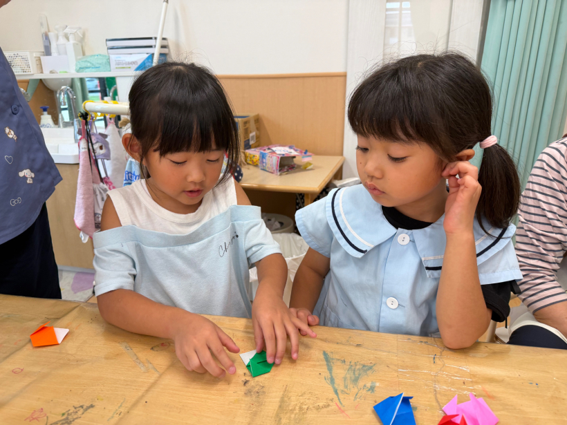 作り方を覚えた子は、「こうやるんだよ」と友だちに教えていました。