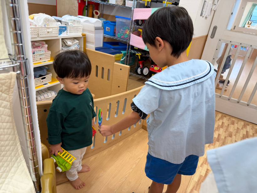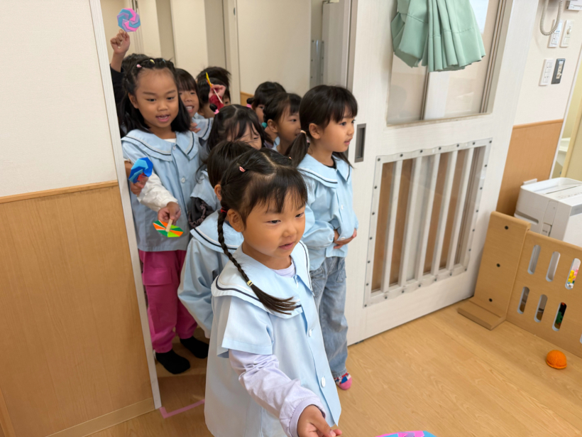 ハロウィンの日は、小さい子のクラスにキャンディーを配りに行って、喜んでもらえると嬉しそうでした。