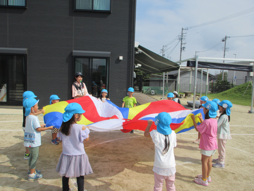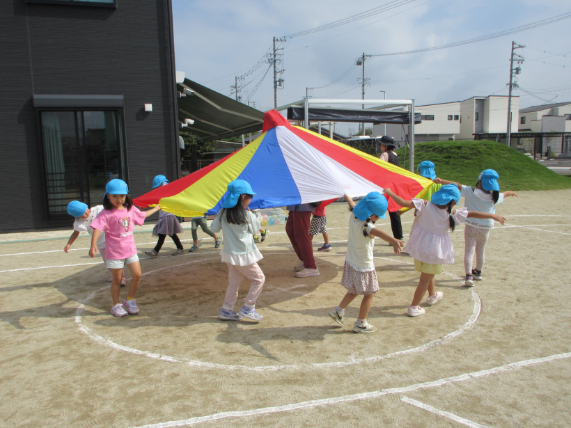 パラバルーンは、部屋でもバンダナをパラバルーンに見立てて楽しんでいました。
