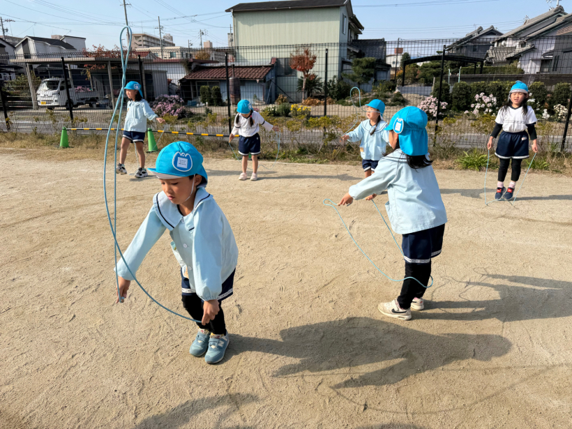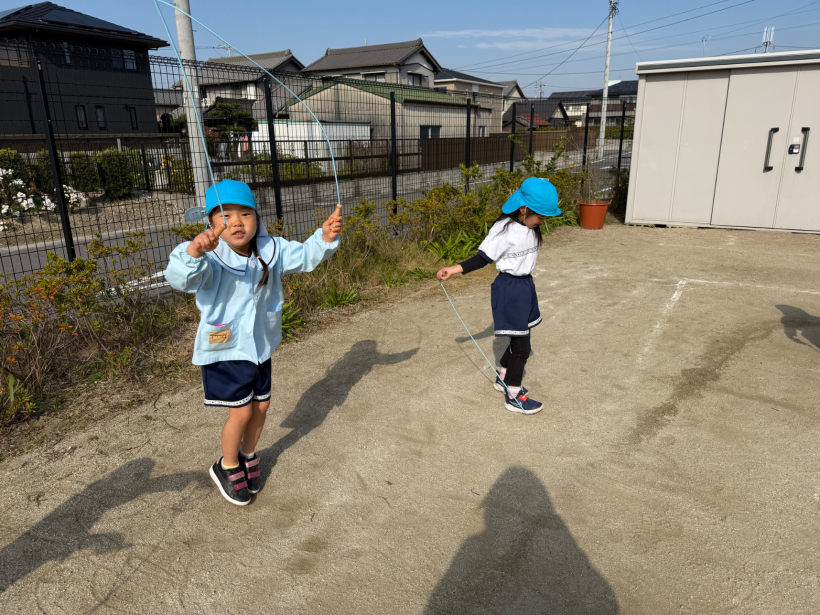最初は、なわを回すだけで精一杯でしたが、連続跳びも少しずつ出来るようになってきました。