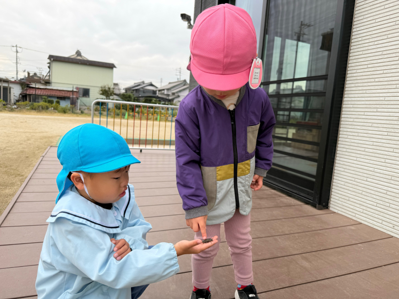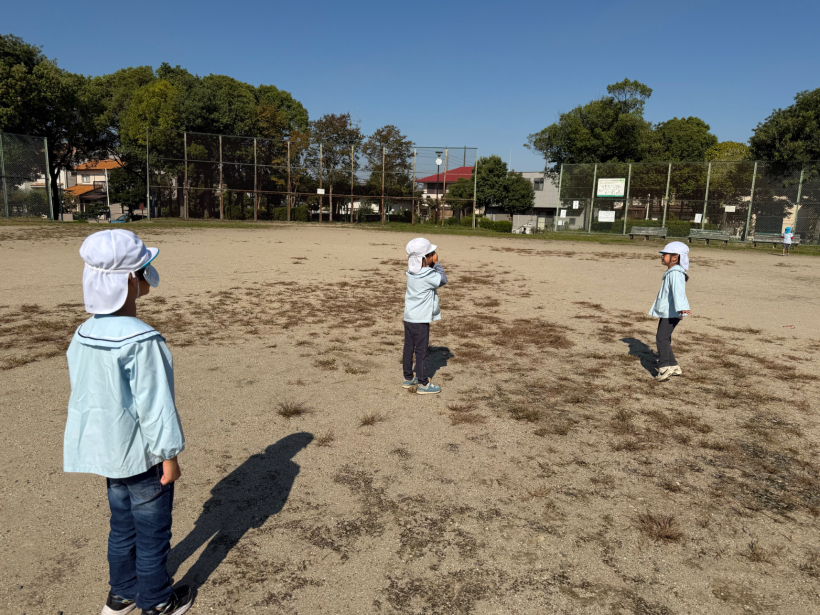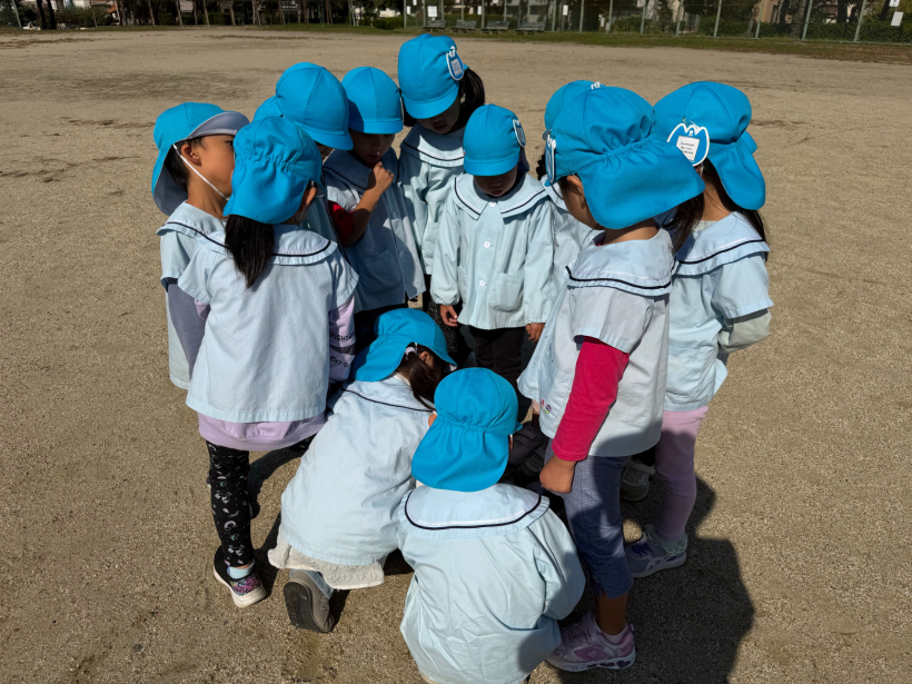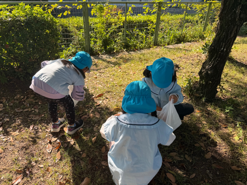 どんぐり拾いをしたり、みんなでグラウンドで氷鬼をしたりして、楽しく過ごしました。