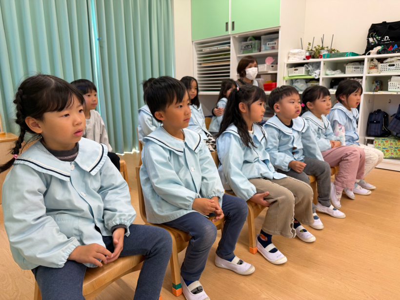 南陽図書館の職員の方が来て、お話の会がありました。色々な絵本や紙芝居を読んでもらい、「つぎはどうなるのかな?」とワクワクしながらお話の世界を楽しんでいました。