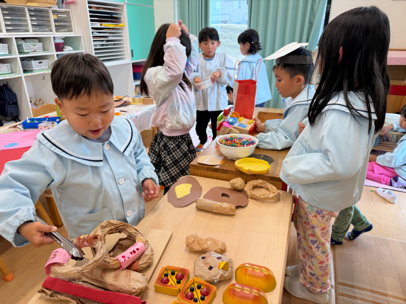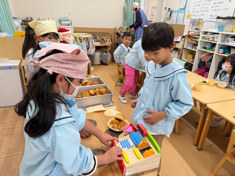 たくさん食べた後は、玩具のパンを並べて再びパン屋さんごっこが始まりました。