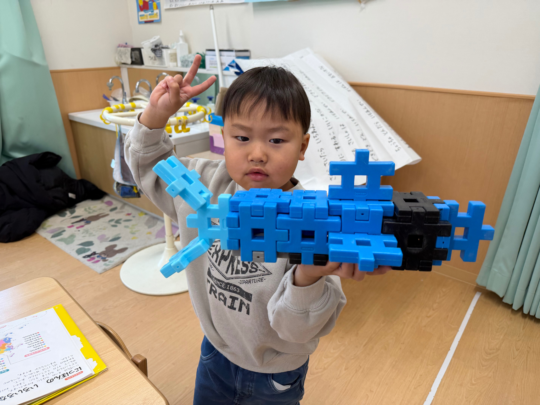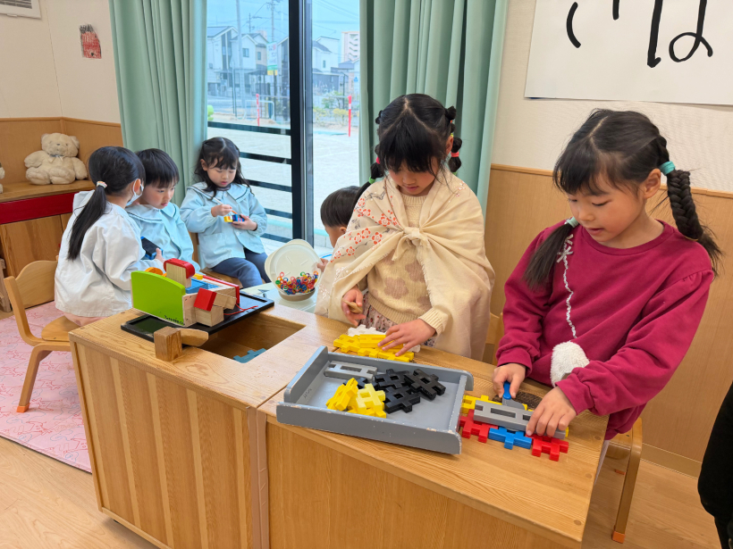保育者の包丁さばきを真似をして3枚おろしにしたり、ブロックでサバを作ったりして楽しんでいました。