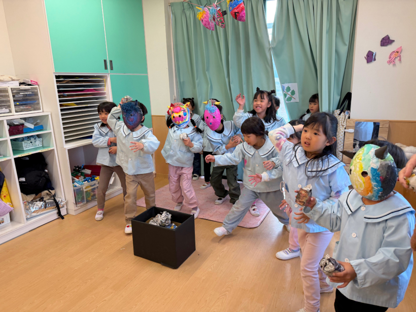 節分の日は、豆まきをして鬼退治をしました。