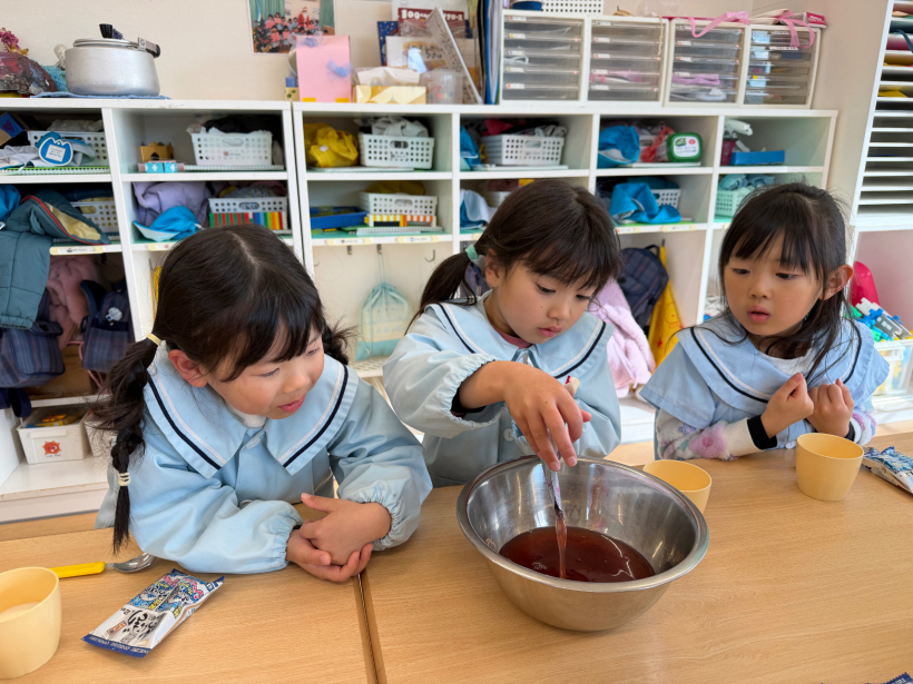 午後のおやつは、みんなでフルーチェを作りました。