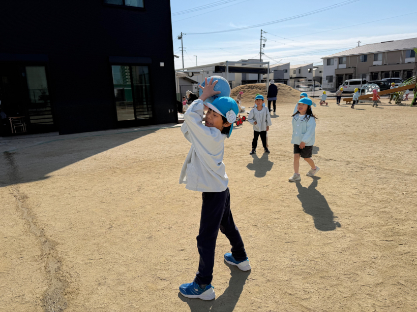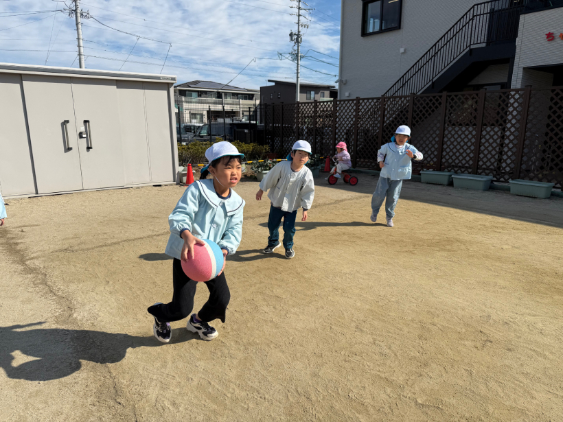 ドッジボールが大好きで、登園すると「きょうドッジボールする?」「はやくそといきたい!」と毎日ドッジボールで遊んでいました。