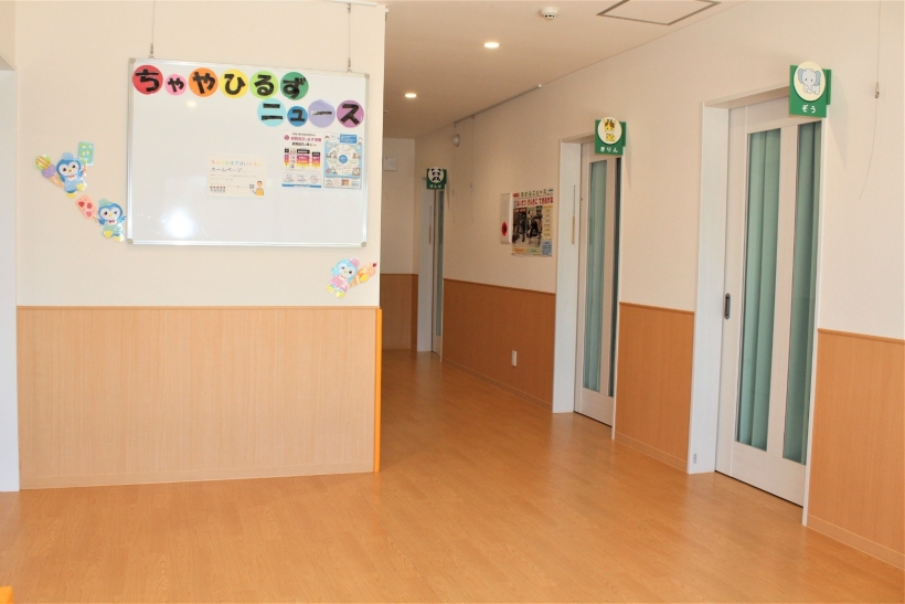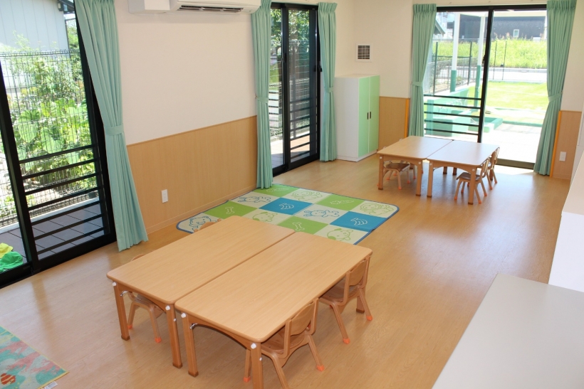 写真は、ぱんだぐみ(3歳児)の保育室です。木目調のやさしい雰囲気のお部屋です。