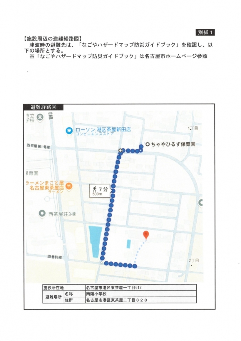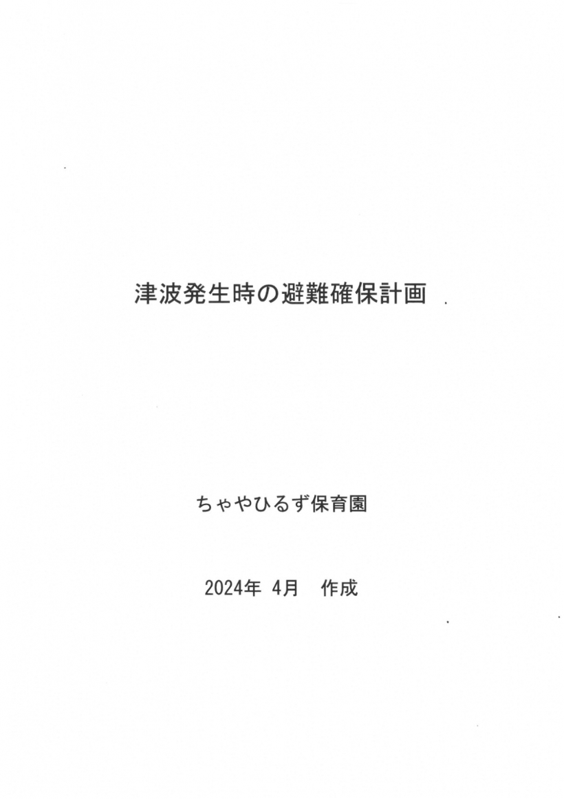 ちゃやひるず保育園では、以下の計画をもとに様々な災害を想定して避難訓練を行っています。